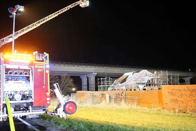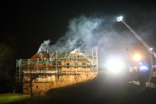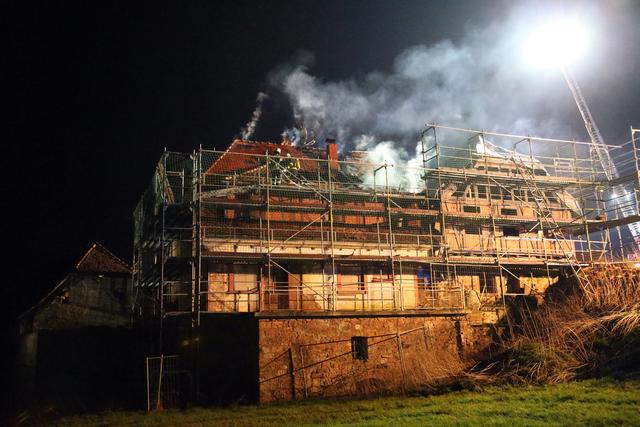 Kurz vor 22 Uhr wurde die Feuerwehr zum Brand auf einem leerstehenden Aussiedlerhof nahe der Bundesstraße B469 alarmiert. Als die ersten Kräfte eintrafen schlugen bereits Flammen aus dem Dachbereich eines mehrgeschossigen Wohngebäudes, welches sich derzeit im Umbau befindet.