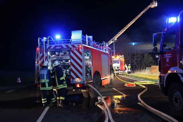 Während der Löscharbeiten musste die Kreisstraße komplett gesperrt werden.