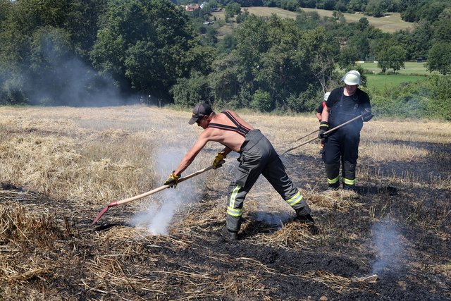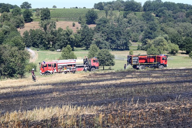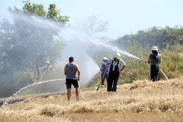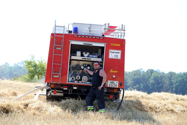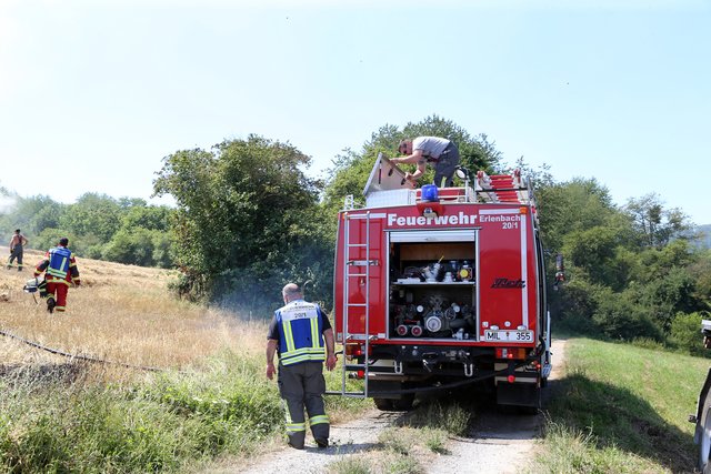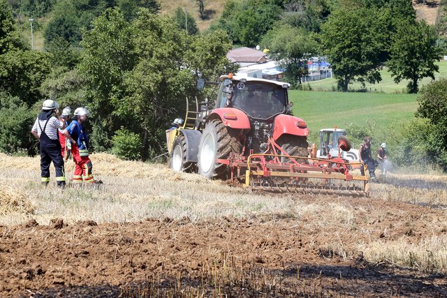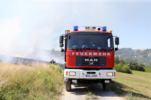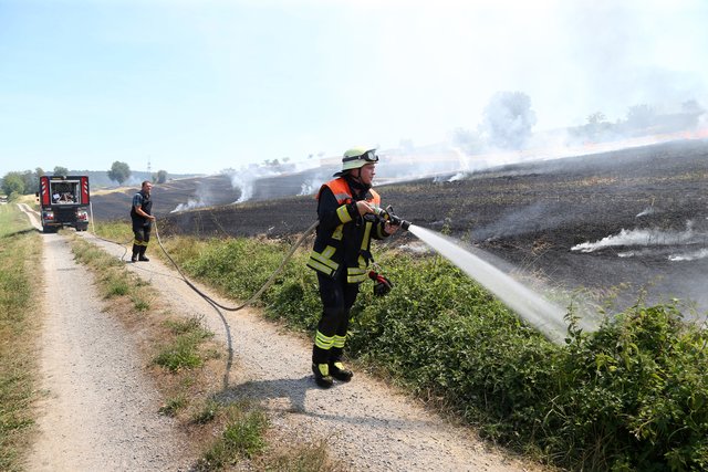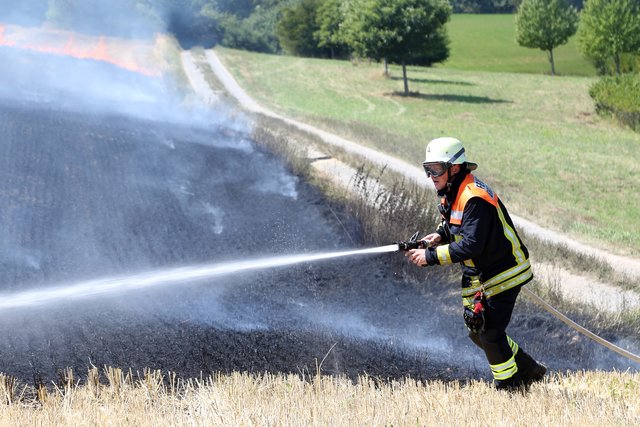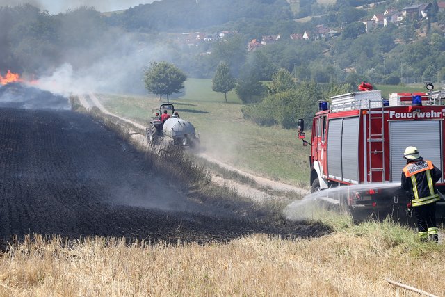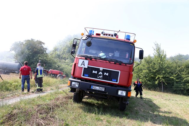 Mit massivem Kräfteeinsatz, unterstützt durch mehrere landwirtschaftliche Güllefässer und einen Wassertank des Technischen Hilfswerke gelang es das Feuer abzulöschen und ein Übergreifen auf das Waldstück zu verhindern.