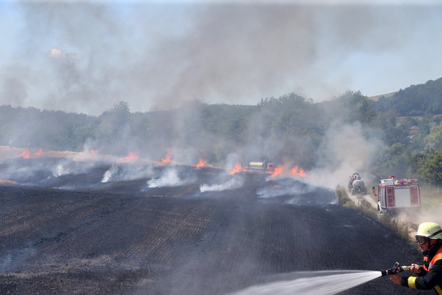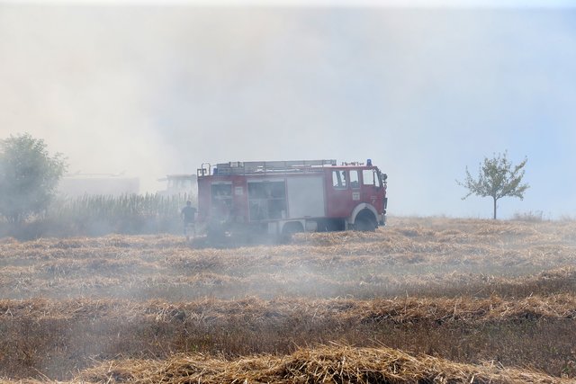 Aus bisher ungeklärten Gründen war ein abgeernteter Roggenacker in Brand geraten und das Feuer breitete sich durch den bestehenden Wind rasch in Richtung eines Waldstücks aus.